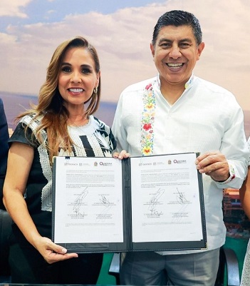 Ciudad de México, Martes 28 de Marzo, 2023 (Fuente: Comunicado).- En el marco del Tianguis Turístico 2023 que se celebra en el Centro Citibanamex de la Ciudad de México, el Gobernador del estado de Oaxaca Salomón Jara Cruz y su homóloga del estado de Quintana Roo, Mara Lezama Espinosa firmaron un convenio de colaboración cuyo objetivo es concertar trabajos y colaborar en el impulso de acciones que permitan desarrollar la cooperación interinstitucional en el ámbito turístico.