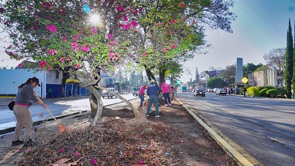 Las acciones de limpieza y embellecimiento urbano constaron de barrido, limpieza de jardineras, retiro de maleza y escombros, así como la recolección de los desechos orgánicos e inorgánicos.