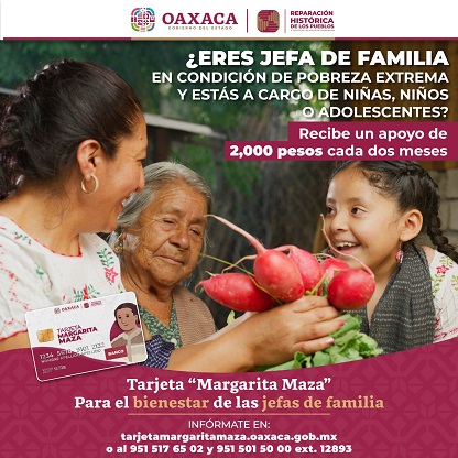 Para conocer mayores informes, la SEBIENTI pone a disposición los siguientes teléfonos: 951 517 65 02 y 951 501 50 00 Extensión 12893, o bien visitar la página oficial https://www.oaxaca.gob.mx/sebienti/tarjeta-margarita-maza/.