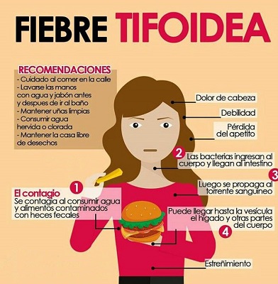 Expresó que la bacteria que produce la tifoidea contamina principalmente a los alimentos lácteos (leche, queso, crema, mantequilla), a los mariscos que crecen en lugares cercanos a puntos de eliminación de aguas residuales y las verduras que son regadas con aguas contaminadas.