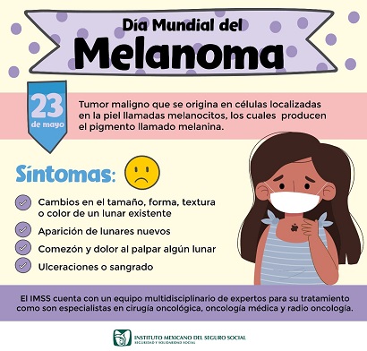 Al respecto, la dermatóloga Patricia Garnica Cruz, en el Hospital General de Zona (HGZ) No. 1, indicó que del Hospital General de Zona (HGZ) No. 1, indicó que el melanoma es un tipo de cáncer de piel que se genera cuando las células que dan color (melanocitos) comienzan a crecer fuera de control.