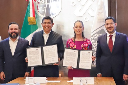 Ciudad de México, Jueves 25 de Mayo, 2023 (Fuente: Comunicado).- El gobernador de Oaxaca, Salomón Jara Cruz, y la Jefa de Gobierno de la CDMX, Claudia Sheinbaum Pardo, firmaron un convenio general para fortalecer la colaboración y compartir experiencias de gobierno y “hacer de la relación entre Oaxaca y la Ciudad de México la mejor que haya existido nunca”, destacó Sheinbaum Pardo.