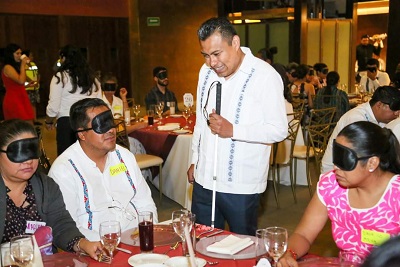 Oaxaca, Oaxaca, Jueves 01 de Junio, 2023 (Fuente: Comunicado).- Una extraordinaria velada que superó las expectativas del Sistema para el Desarrollo Integral de la Familia (DIF) Oaxaca fue la que se vivió en la Cena a Ciegas llevada a cabo la noche del martes 30 de mayo, cuyos fondos recaudados serán para optimizar la prestación de los servicios a la población usuaria que acude al Centro de Atención Integral para Ciegos y Débiles Visuales (CECYD).