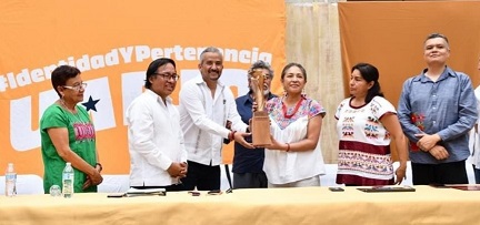 Oaxaca, Oaxaca, Sábado 17 de Junio, 2023 (Fuente: Comunicado).- El histórico Ex Convento de San José, de la Facultad de Bellas Artes de la UABJO, fue sede de la Ceremonia de Entrega del Reconocimiento y galardón a la cineasta Ángeles Cruz, de origen mixteco.