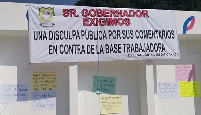 De este modo, la base trabajadora de Sistema DIF Estatal Oaxaca también exige una disculpa pública por parte del gobernador: “la palabra tiene alcances y consecuencias, esta es una manifestación de la base ante la campaña de difamación en contra nuestra”, indicaron.