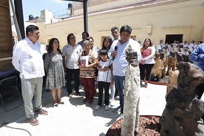 En la Real Alhóndiga de Antequera, ante familiares del pintor y escultor oaxaqueño oriundo de Teococuilco de Marcos Pérez, el Mandatario Estatal expresó su reconocimiento a la obra escultórica de este gran oaxaqueño, la cual -dijo- despierta conciencias y refleja con gran espíritu el entramado social humano de las comunidades oaxaqueñas.