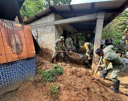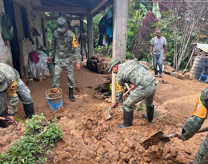 A su vez, personal del Ejército Mexicano realiza trabajos en apoyo a la población de las agencias municipales de Ixtlán de Juárez.