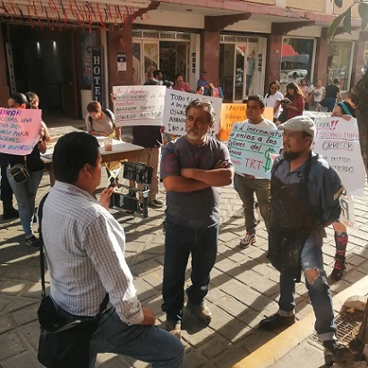 Los expertos, junto con sus educandos, instalaron sobre la calle de Aldama, esquina con Miguel Cabrera (Centro Histórico de la capital de Oaxaca), todos sus instrumentos de trabajo para interrumpir el flujo vehicular, en exigencia de respeto a sus derechos laborales y del cese a la campaña de hostigamiento emprendida en su contra por el secretario de las Culturas y Artes, Víctor Cata, y el director del taller Rufino Tamayo, Enrique Gijón.