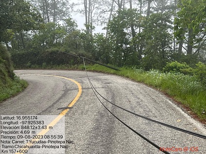 Por otra parte, la noche de este jueves se reportó el colapso de un tramo de la carretera estatal Pluma Hidalgo-Huatulco, por lo que no hay paso para quienes quieran cruzar esta vía corta para llegar al destino turístico (a Huatulco), por eso se pide tomar vías alternas, por ejemplo, por Pochutla.