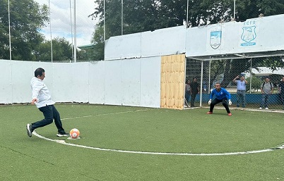 Finalmente, las autoridades presentes realizaron el enceste y patada inaugural de este encuentro deportivo, previo al primer partido de fútbol a realizarse en las canchas del recinto deportivo antes mencionado.
