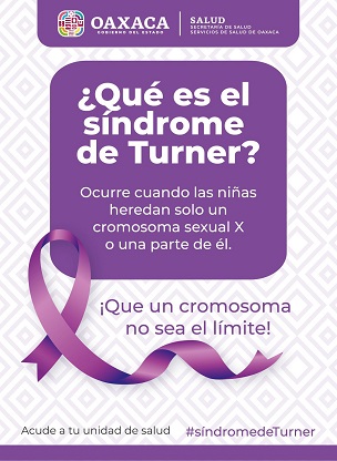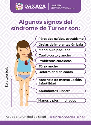 Oaxaca, Oaxaca, Martes 29 de Agosto, 2023 (Fuente: Comunicado).- El Síndrome de Turner es una alteración genética que se da en una de cada 12 niñas nacidas en el país, detectarlo a tiempo para su tratamiento oportuno es una tarea y responsabilidad de todas y todos, informaron los Servicios de Salud de Oaxaca (SSO).