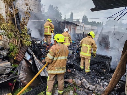 Las llamas consumieron una vivienda de lámina y madera, sin que se reportaran pérdidas de vidas humanas.
