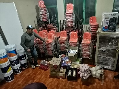 El IEEPO realizó el traslado y entrega a la institución educativa de 32 mesas y 128 sillas para preescolar, cuatro mesas con sus sillas para docentes, ocho pizarrones, igual número de anaqueles y botes de pintura, un archivero, una bocina y una bandera con sus implementos, así como material de oficina con cinco millares de hojas blancas, 500 folders, 10 paquetes de marcadores y de borradores para pizarrón blanco.
