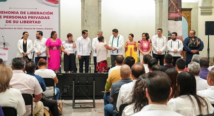 Oaxaca, Oaxaca, Sábado 16 de Septiembre, 2023 (Fuente: Comunicado).- En un acto de humanismo, libertad y justicia, el Gobernador del Estado Salomón Jara Cruz y la Presidenta Honoraria del Sistema DIF Oaxaca Irma Bolaños Quijano, entregaron 170 boletas de liberación a mujeres y hombres indígenas y de escasos recursos, con lo que suman mil 411 personas liberadas en lo que va de esta administración.