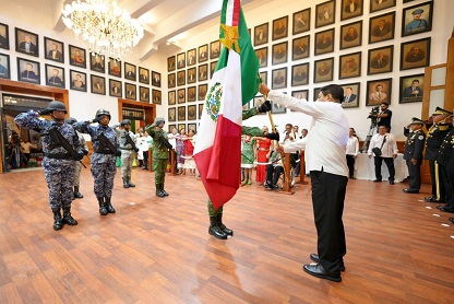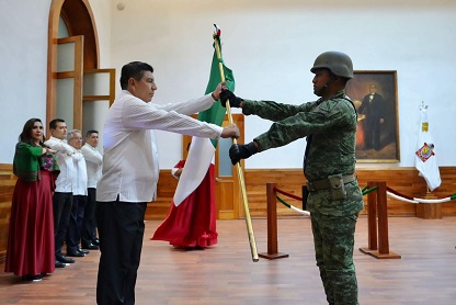 El Jefe del Ejecutivo Estatal recibió la Bandera Nacional de manos de la Escolta del Ejército Mexicano.