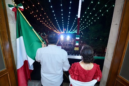 Acompañado de la Presidenta Honoraria del Sistema para el Desarrollo Integral de la Familia (DIF) Oaxaca Irma Bolaños Quijano, el Gobernador de raíces zapotecas fue coreado en sus vivas por oaxaqueñas, oaxaqueños y visitantes que abarrotaron la Plaza de la Constitución, donde posteriormente el cielo se iluminó con los colores verde, blanco y rojo de los fuegos artificiales.