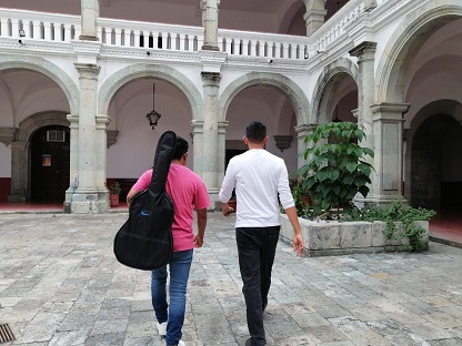 Oaxaca, Oaxaca, Lunes 18 de Septiembre, 2023 (Fuente: Comunicado).- Gracias a la colaboración conjunta impulsada desde el Secretariado Ejecutivo del Sistema Estatal de Seguridad Pública (SESESP), con la Dirección de Ejecución de Medidas para Adolescentes (DEMA), un joven en proceso de reinserción social inició su formación musical en la Facultad de Bellas Artes de la Universidad Autónoma Benito Juárez de Oaxaca (UABJO).