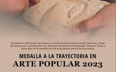 Oaxaca, Oaxaca, Jueves 21 de Septiembre, 2023 (Fuente: Comunicado).- Para reconocer el trabajo de las y los artesanos de la entidad el Gobierno Estatal a través de la Secretaría de las Culturas y Artes (SECULTA) lanzó la convocatoria Medalla a la Trayectoria en Arte Popular 2023 dirigida a la comunidad artesana que cuente con una trayectoria comprobable de más de 40 años.