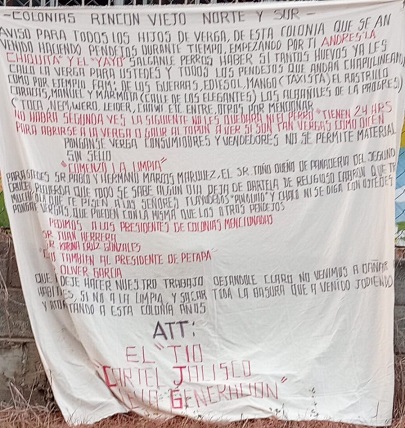 Para la mañana de este lunes 25 de septiembre, a las afueras de un preescolar de la colonia Rincón Viejo de esa ciudad, fue localizada en la cerca perimetral una manta con un mensaje, firmado presuntamente por un grupo criminal: una presunta narcomanta.
