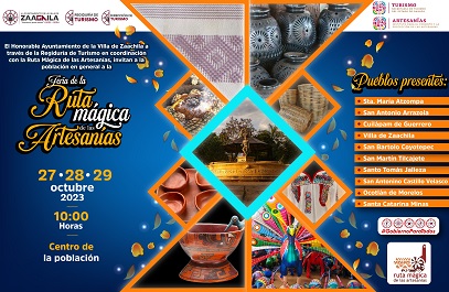 Oaxaca, Oaxaca, Miércoles 18 de Octubre, 2023 (Fuente: Comunicado).- En el marco de las celebraciones por el Día de Muertos en Oaxaca, el Gobierno del Estado a través del Instituto para el Fomento y la Protección de las Artesanías (IFPA), invita a la Feria de la Ruta Mágica de las Artesanías que se llevará a cabo del 27 al 29 de octubre en la Villa de Zaachila, municipio situado en los Valles Centrales.
