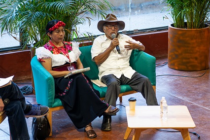 En este marco, se ofreció la mesa Narrativa: cuento y novela en lenguas indígenas. Retos y perspectivas, donde participaron la autora Ruperta Bautista (tsotsil) y el autor Javier Castellanos (zapoteco), con Mito Reyes como moderador. En esta actividad reflexionaron sobre el entorno en el cual se ha desarrollado la literatura escrita desde los pueblos originarios.