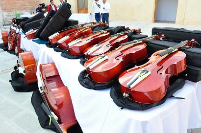 En presencia de la directora de Desarrollo Educativo del IEEPO, Karina Santiago Santiago, indicó que se entregaron cinco piezas de saxofón soprano, cinco piezas de saxofón contralto, cinco piezas de violoncello medio, cinco piezas de violoncello 3/4, siete piezas de violines 4/4, siete piezas de violines 3/4, siete piezas de violines medios y 3 piezas de contrabajo.