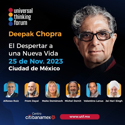 No te pierdas el evento “El Despertar a una nueva vida” de Universal Thinking Forum, este sábado 25 de noviembre con la visita de Deepak Chopra a México, junto a otros expertos que nos guiarán con sus enseñanzas en un camino de sanación, crecimiento, paz interior y autorrealización.