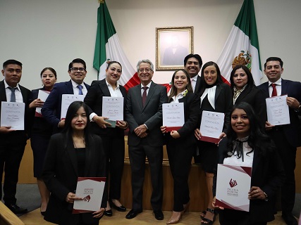 Acompañado por el magistrado decano del Tribunal Superior de Justicia, Crescencio Martínez Geminiano; del presidente de la Comisión de Carrera Judicial del Consejo de la Judicatura, Francisco José Espinosa Santibáñez y del director de la Escuela Judicial, Héctor Humberto Vásquez Quevedo, entregó reconocimientos a quienes conformaron la vigésima quinta generación de egresados y al claustro docente.