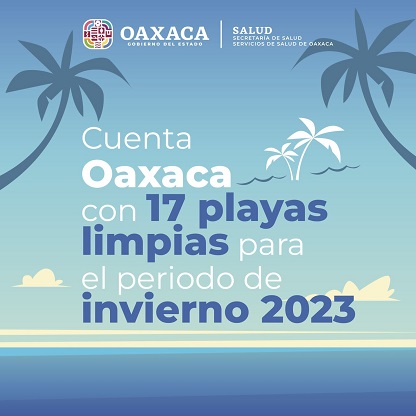Oaxaca, Oaxaca, Sábado 16 de Diciembre, 2023 (Fuente: Comunicado).- Luego del monitoreo realizado por la Dirección de Regulación y Fomento Sanitario en Puerto Escondido, Huatulco y Puerto Ángel (destinos turísticos ubicados en la región Costa de Oaxaca), Servicios de Salud de Oaxaca (SSO) informa que las 17 playas ubicadas en estos destinos turísticos se encuentran limpias para el periodo vacacional de invierno 2023.