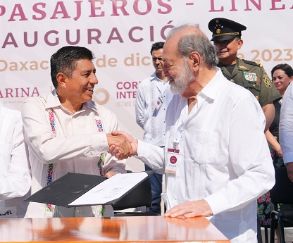 Salina Cruz, Oaxaca, Domingo 24 de Diciembre, 2023 (Fuente: Comunicado).- La unión de los océanos Atlántico y Pacífico es una realidad con el Tren de pasajeros que recorre 308 kilómetros de líneas férreas desde Salina Cruz hasta Coatzacoalcos, Veracruz, aseguró el Presidente de México Andrés Manuel López Obrador al inaugurar junto con los gobernadores de Oaxaca y Veracruz, Salomón Jara Cruz y Cuitláhuac García Jiménez, la Línea Z de este proyecto ferroviario.