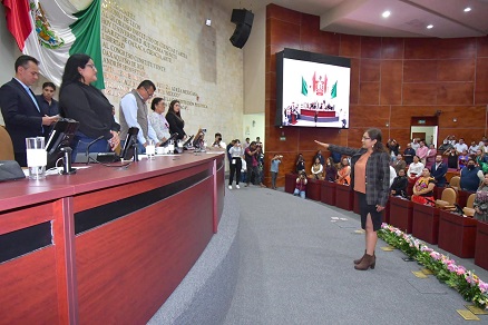 Luego de su designación, la ciudadana Michel Julián López rindió la protesta de ley correspondiente a su cargo, ante la Mesa Directiva de la LXV Legislatura local.