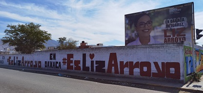 Recientemente, en un predio ubicado cerca de Ciudad Universitaria, sobre la calle de Linderos esquina con avenida Universidad, en la capital de Oaxaca, apareció un espectacular de quien aspira y suspira por llegar a la presidencia municipal de Oaxaca de Juárez (capital del estado), se trata de Liz Arroyo, del partido MORENA y quien actualmente es diputada local, brillando más por sus escándalos y nexos delictivos que por su labor legislativa.