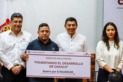 En el evento celebrado en el Salón Benito Juárez de Palacio de Gobierno, el Mandatario oaxaqueño destacó que con esta estrategia se respalda a personas que no pueden acceder a financiamientos de la banca tradicional, con una tasa favorable de interés del 17 por ciento anual.