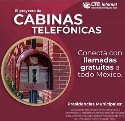 La CFE Telecomunicaciones e Internet para Todos (CFE TEIT) comenzó con la instalación de cabinas telefónicas con servicio de internet y llamadas gratuitas en todo México y Estados Unidos, disponibles las 24 horas del día.