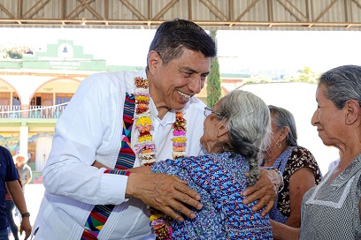 Ante las autoridades auxiliares y el pueblo que se dio cita en la cancha municipal, el Mandatario explicó que el Gobierno de la Transformación trabaja con una cara social y humanista en beneficio de los hombres, mujeres, niñas, niños, personas adultas y adultas mayores de todo Oaxaca.