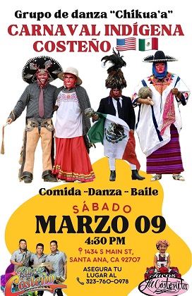Oaxaca, Oaxaca, Viernes 01 de Marzo, 2024 (Fuente: Comunicado).- La comunidad migrante oaxaqueña que reside en el sur de California realizará el primer Carnaval Indígena Costeño en esta zona de Estados Unidos, con el cual busca mantener vivas las raíces ancestrales.