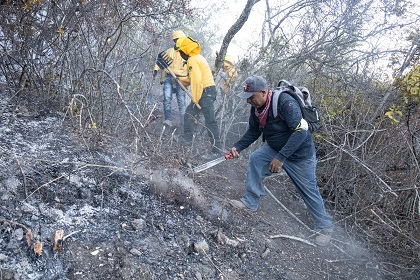 Avanzan con apertura de brecha cortafuego en perímetros de incendio en San Lucas Quiaviní
