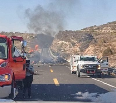 Finalmente, cuatro personas resultaron fallecidas tras el choque de una pipa de doble remolque con otra unidad pesada y un auto particular, en la Supercarretera Oaxaca-Cuacnopalan.