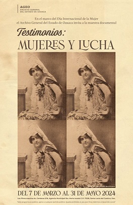Oaxaca, Oaxaca, Sábado 09 de Marzo, 2024 (Fuente: Comunicado).- Con el propósito de acercar a diversos públicos a los archivos históricos durante el marco del Día Internacional de la Mujer, se presenta la exposición documental, fotográfica y sonora Testimonios: mujeres y lucha, en la Sala de exposiciones del Archivo General del Estado de Oaxaca (AGEO).