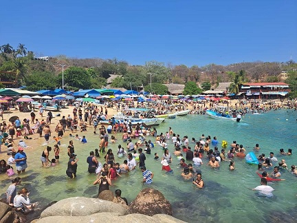En el caso de la ciudad de Oaxaca, se registró una ocupación hotelera promedio de 72.47 por ciento con la llegada de 60 mil 187 visitantes y una derrama económica de 250 millones de pesos. En Bahías de Huatulco la ocupación promedio fue de 91. 36 por ciento, con 33 mil 742 visitantes y una derrama económica de 301 millones de pesos. Y en Puerto Escondido la ocupación hotelera promedio fue de 72. 47 por ciento, con 41 mil 988 turistas y 101 millones de pesos.