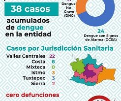 Hasta la semana epidemiológica número 13 del presente año, en el territorio oaxaqueño se registró un caso nuevo de esta enfermedad, perteneciente a la Jurisdicción Sanitaria 4 Costa, con el cual suman 80 a nivel estatal.