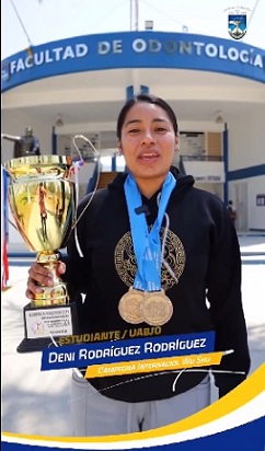 La estudiante de 10º semestre de la Facultad de Odontología agradeció el apoyo de las autoridades universitarias, de sus padres y de todos quienes le han apoyado en su exitosa trayectoria profesional y deportiva, que le ha brindado una proyección mundial en las artes marciales.