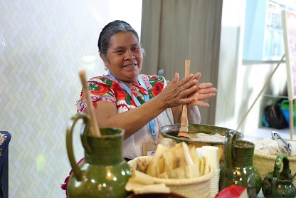 El programa Jueves de Gozona contó también con la presencia de cocineras tradicionales de Teotitlán del Valle que invitaron a degustar chocolateatole, atole blanco, tamales y chocolate en barras; una chef especializada en platillos de las ocho regiones del estado y personas productoras de café de Pluma Hidalgo.