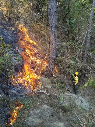 *Brigadas de la dependencia atienden reporte de conflagración en Santa María Sola, distrito de Sola de Vega en la Sierra Sur