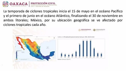 La temporada de lluvias y ciclones tropicales 2024 iniciará el próximo 15 de mayo y terminará el 30 de noviembre, por ello la importancia de dar a conocer estas acciones preventivas.