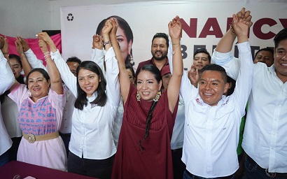 Fue en Santa Cruz Xoxocotlán, al lado de la candidata a la presidencia municipal, Nancy Benítez, donde el líder estatal destacó que Morena fue el único instituto político que logró registrar planillas a concejalías en los 152 municipios que elegirán a sus representantes a través del sistema de partidos políticos.
