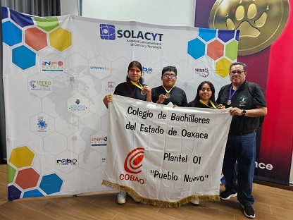 Oaxaca, Oaxaca, Viernes 03 de Mayo, 2024 (Fuente: Comunicado).- El estudiantado del Colegio de Bachilleres del Estado de Oaxaca (COBAO), puso en alto al Plantel 01 Pueblo Nuevo y con ello al estado de Oaxaca al ganar el derecho para representar a México en Chile, en la competencia Infomatrix 2024.