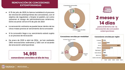 Oaxaca, Oaxaca, Martes 07 de Mayo, 2024 (Fuente: Comunicado).- La Secretaría de Movilidad (SEMOVI) convoca a las personas titulares de concesiones del servicio de transporte público en la entidad a realizar el proceso de renovación extemporánea de este permiso.