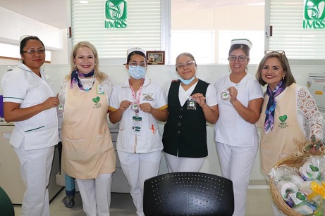 Dicho evento estuvo a cargo de la licenciada María Isabel Romero Álvarez, directora honoraria y miembros del Voluntariado del IMSS, quienes entregaron kits a las mamás que se encuentran en el área de Ginecobstetricia, como muestra de afecto y reconocimiento por su esfuerzo diario.