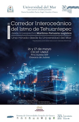 Oaxaca, Oaxaca, Martes 14 de Mayo, 2024 (Fuente: Comunicado).- La Universidad del Mar (Umar) desarrollará los días 16 y 17 de mayo el conversatorio: El Corredor Interoceánico del Istmo de Tehuantepec (CIIT), con el objetivo de ampliar el conocimiento respecto al desarrollo de esta zona estratégica del sur del país.